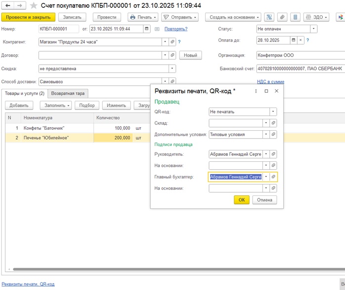 Программа запомнит ваш выбор и при создании нового счета подставит настройку печати из последнего счета по этому контрагенту.